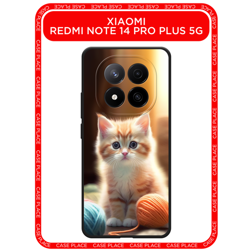 Черный матовый чехол на Xiaomi Redmi Note 14 Pro+ 5G / Сяоми Редми Нот 14 Про+ 5G с принтом Рыжий котёнок с клубком