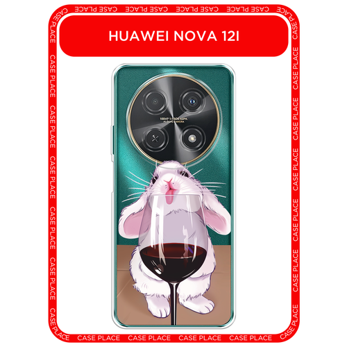 Чехол на Huawei Nova 12i/Nova 13i / Хуавей Нова 12i/Нова 13i с принтом Кролик облизывает бокал, прозрачный