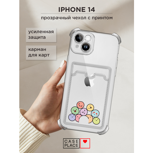 Чехол на Apple iPhone 14 (Айфон 14) с картой и принтом Со смайликами