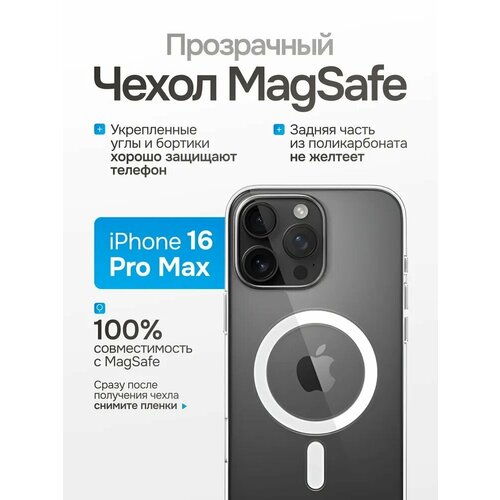 Чехол на Айфон 16 Про Макс с поддержкой MagSafe / магсейф для iPhone 16 Pro Max, прозрачный, противоударный