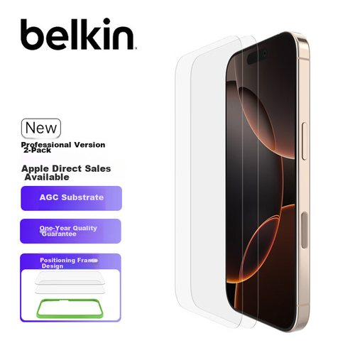 Belkin IPhone 16 Pro Max Screen Protector, IPhone 16 Pro Max Tempered Glass Film, IPhone 16 Pro Max Shockproof Phone Film, Asahi Material, 2-Pack, OVA166
