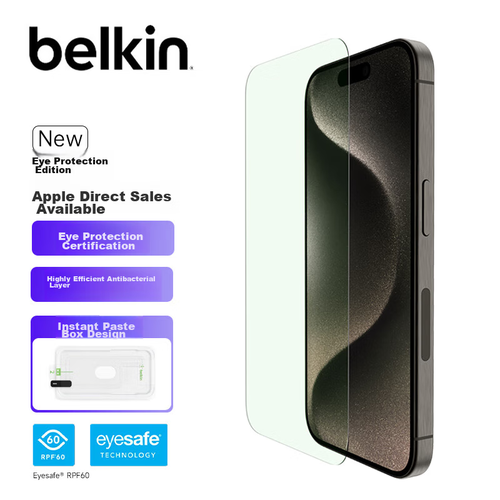 Belkin IPhone 16 Pro Max Screen Protector, Anti-Blue Light, IPhone 16 Pro Max Tempered Glass Film, IPhone 16 Pro Max Shatterproof Phone Film, Antibacterial Base Material, OVA164