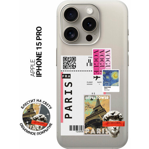 Силиконовый чехол на Apple iPhone 15 Pro / Эпл Айфон 15 Про с рисунком "Paris Stickers"