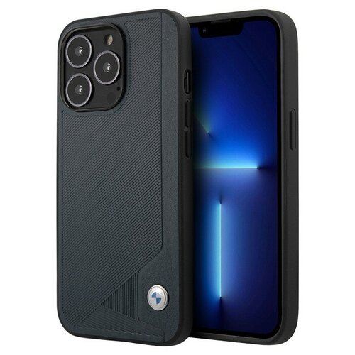 Чехол BMW для iPhone 15 Pro Max, PU-кожа M-Collection Carbon blue line