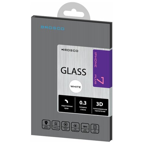 Защитное стекло для Apple iPhone 7 Plus\8 Plus Brosco 3D, изогнутое по форме дисплея, с белой рамкой