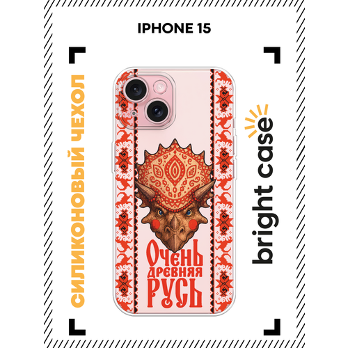 Чехол на Apple iPhone 15 / Айфон 15 с принтом Русский Тритератопс, прозрачный