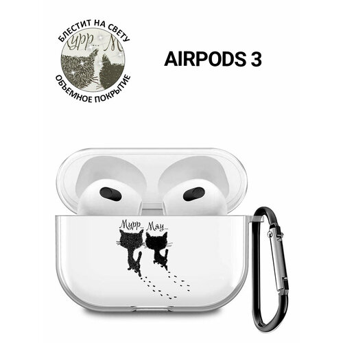 Прозрачный чехол для наушников Apple AirPods 3 / АирПодс 3 силиконовый с 3D принтом "Cats"