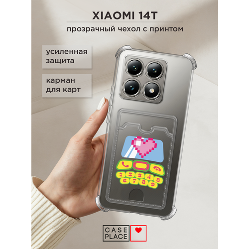 Чехол на Xiaomi 14T (Сяоми 14T) с картой и принтом Пиксельное сердечко