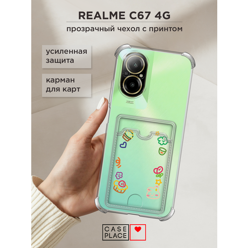 Чехол на Realme C67 4G (Реалми C67 4G) с картой и принтом Милый корейский чехол