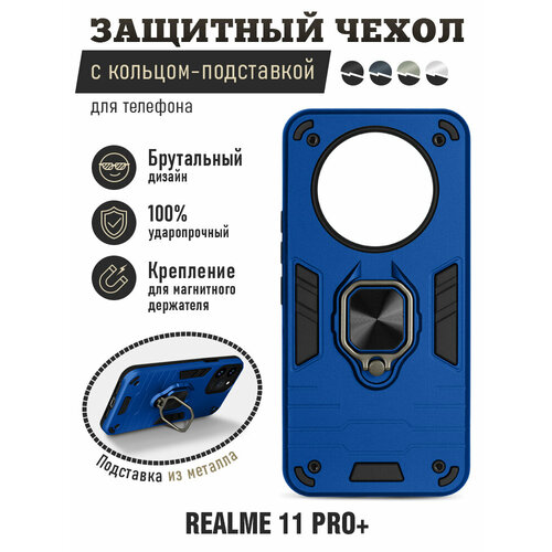 Защищенный чехол с металлической пластиной для магнитного держателя и кольцом для Realme 11 Pro+ DF rmArmor-08 (dark blue)