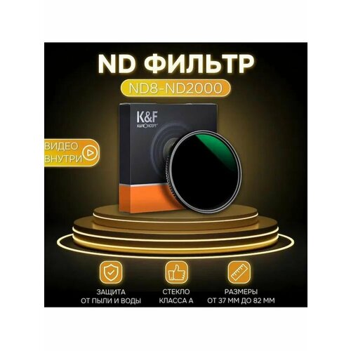 Переменый нейтральный фильтр K&F ND8-2000 40.5mm Slim, Neutral Density, Waterproof, Scratch-Proof