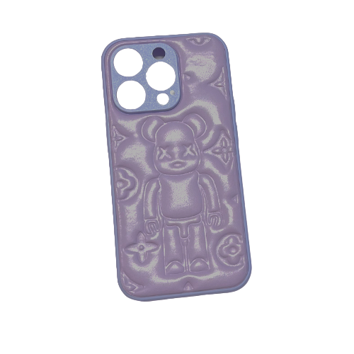 Объёмный силиконовый чехол с Kaws для iPhone 14 Pro лиловый стоит/ накладка на телефон