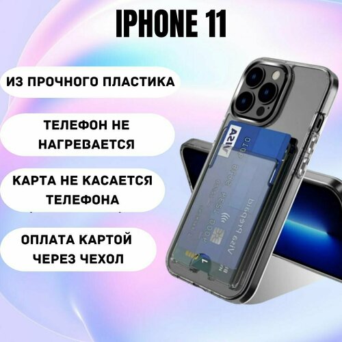 Чехол на айфон 11 противоударный с карманом для карт / пластик + TPU