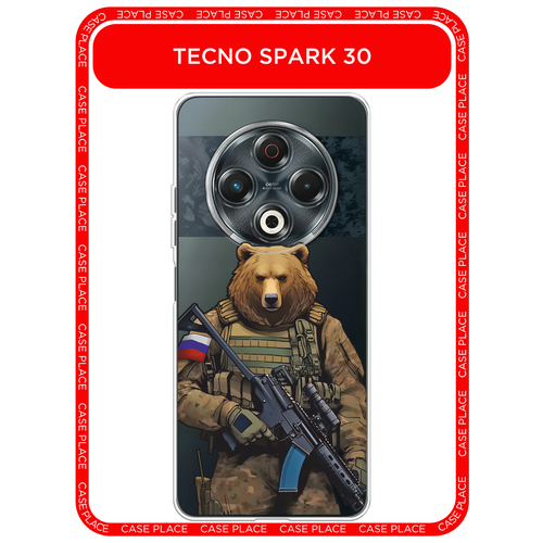Чехол на Tecno Spark 30 / Текно Спарк 30 с принтом Медведь с автоматом, прозрачный