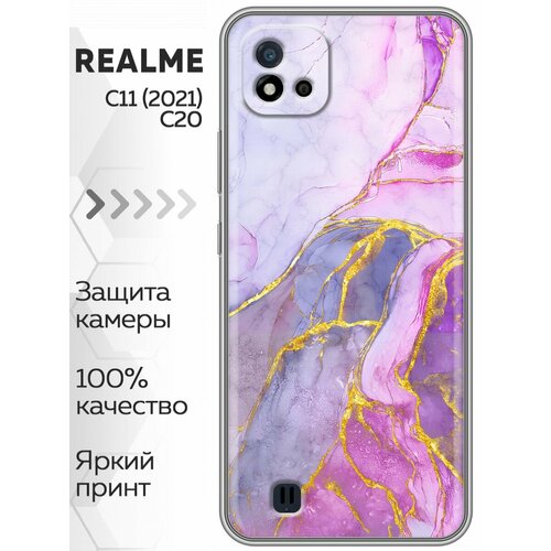 Чехол для Realme C20, Realme C11 2021 с принтом Мрамор розовый (реалми С20, реалме С11 2021)