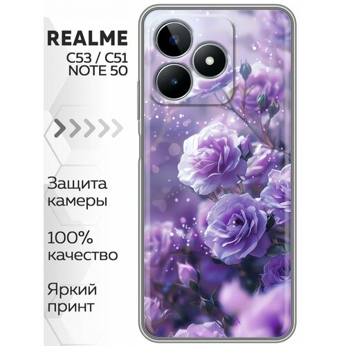 Чехол для Realme C53, C51, C51S, Note 50, Narzo N53 Цветы сиреневые розы (Реалми С53, С51s, С51, Нот 50, Нарзо Н53)