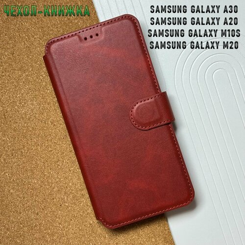 Чехол книжка для Samsung Galaxy A30 / A20 / M10s / M20 кожаный с магнитной застежкой / Самсунг Галакси А30, А20, М10с, М20 с хлястиком , с функцией подставки