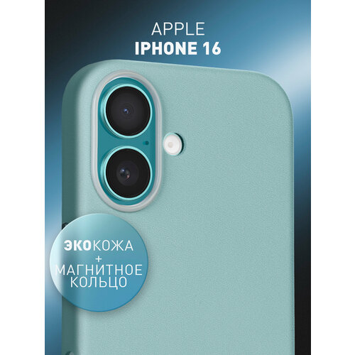 Чехол c магнитным кольцом Rosco для Apple iPhone 16 (Айфон 16), защита камеры, экокожа, мятный