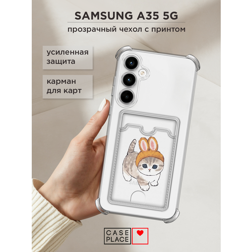 Чехол на Samsung Galaxy A35 5G (Самсунг Галакси А35 5G) с картой и принтом Котик с ушками зайца