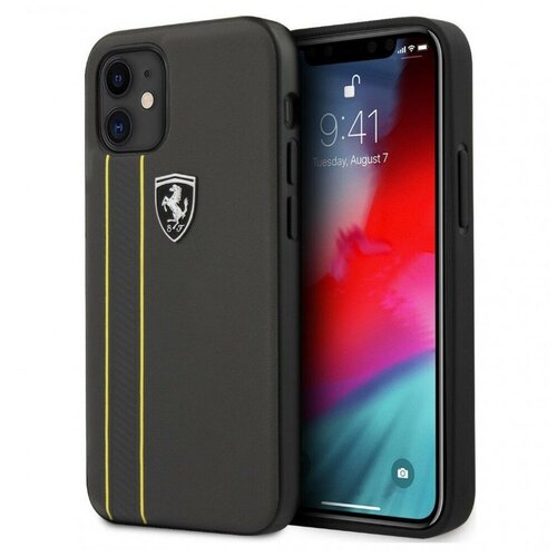 Ferrari для iPhone 12 mini (5.4) чехол Off-Track Genuine leather Stitched stipe Hard Grey