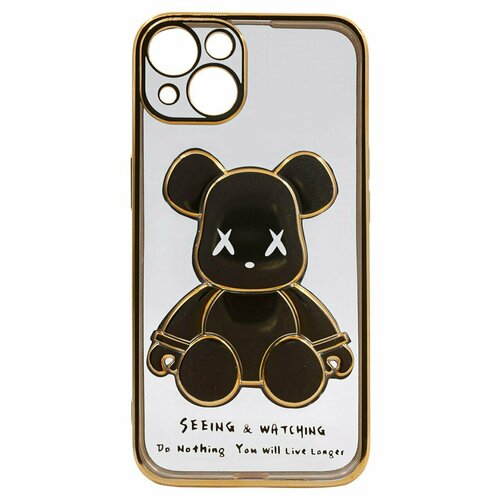 Чехол для iPhone 14 Plus прозрачный с 3D мишкой Золотой