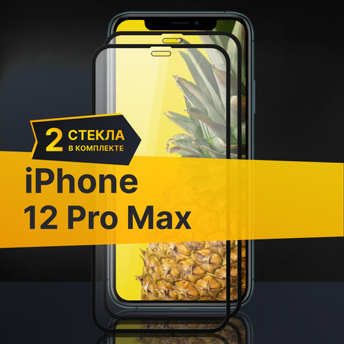 Комплект 2 шт. Противоударное защитное стекло для телефона Apple iPhone 12 Pro Max / Полноклеевое 3D стекло с олеофобным покрытием на смартфон Эпл Айфон 12 Про Макс / С черной рамкой