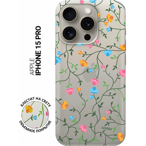 Силиконовый чехол на Apple iPhone 15 Pro / Эпл Айфон 15 Про с рисунком "Сurly Flowers"