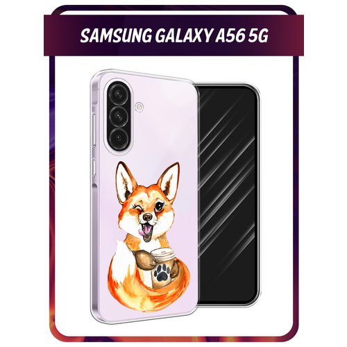 Чехол на Samsung Galaxy A56 5G / Самсунг Галакси А56 5G с принтом Подмигивающая лиса с кофе, прозрачный