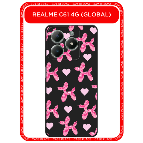 Черный матовый чехол на Realme C61 4G (Global) / Реалми C61 4G с принтом balloon dogs pink