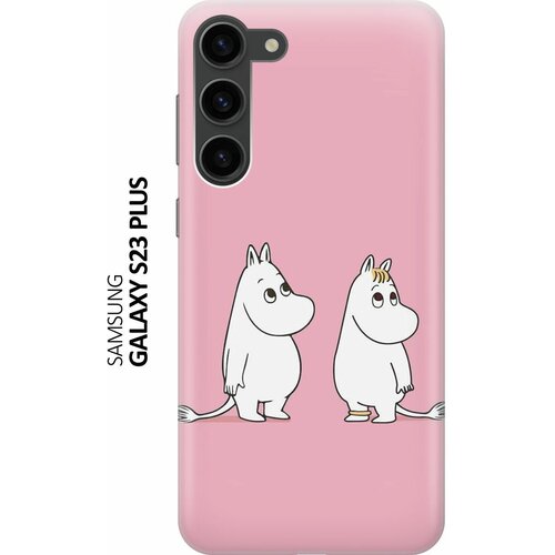 Силиконовый чехол на Samsung Galaxy S23+, Самсунг С23 Плюс с принтом "Муми-тролли на розовом"