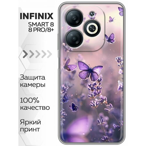 Чехол для Infinix Smart 8, 8 Plus, 8 Pro бабочки и лаванда (Инфиникс Смарт 8, 8 плюс, 8 Про)