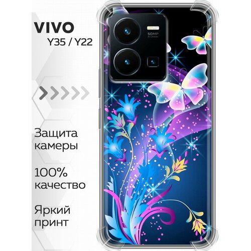 Дизайнерский силиконовый с усиленными углами чехол для Виво У22 / Vivo Y22 Бабочки