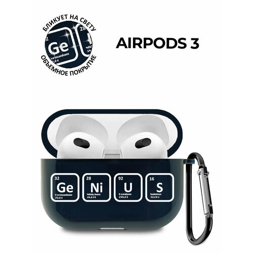 Силиконовый прозрачный чехол для наушников Apple AirPods 3 с 3D принтом "Genius W" черный