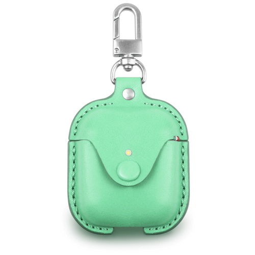 Защитный кожаный чехол для наушников AirPods на кнопке с карабином, мятный