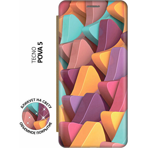 Чехол-книжка Желто-розовые фигуры на Tecno Pova 5 / Техно пова 5 с эффектом блика золотой