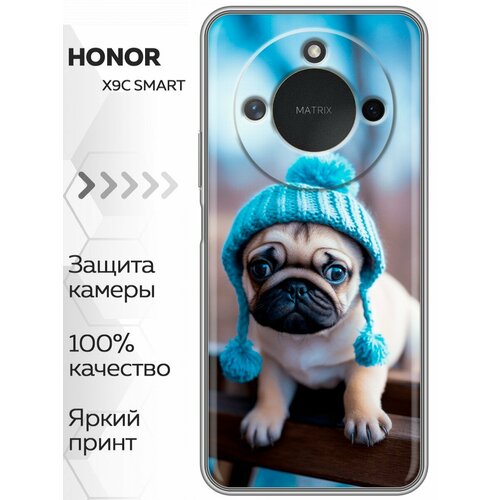 Чехол для Honor X9c Smart с принтом Щенок мопса в шарке (Хонор Х9С Смарт)