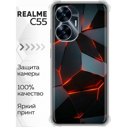 Дизайнерский силиконовый с усиленными углами чехол для Реалме С55 / Realme C55 Яркие абстракции красный