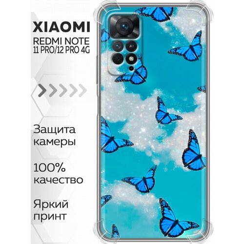 Дизайнерский силиконовый с усиленными углами чехол для Сяоми Редми Ноут 12 Про 4Ж / Xiaomi RedMi Note 12 Pro 4G Бабочки принт