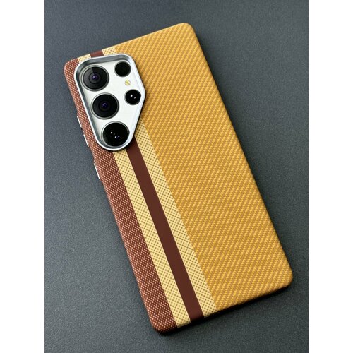 Чехол для Samsung S25 Ultra с MAGSAFE из ударопрочного пластика под карбон оранжевый