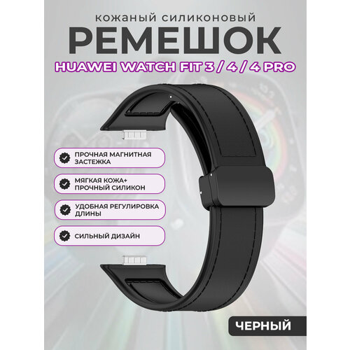 Кожаный силиконовый ремешок для Huawei Watch Fit 3/4/4 Pro, с магнитной застежкой