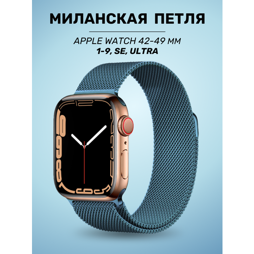 Металлический ремешок для Apple Watch 42/44/45/49mm / Браслет миланская петля на Эпл Вотч 1-9, SE серии / Лазурный