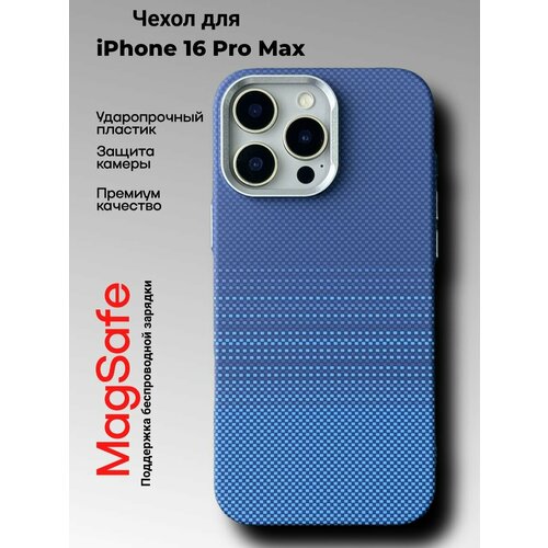 Чехол для iPhone 16 Pro Max с MagSafe под карбон из ударопрочного пластика с защитой камеры синий