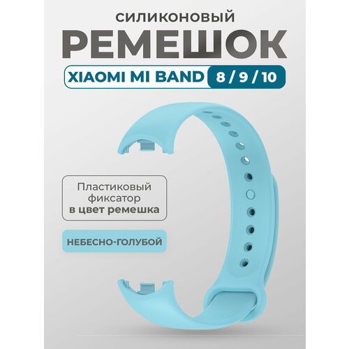 Силиконовый ремешок для Xiaomi Mi Band 8/9/10, с пластиковым фиксатором, небесно-голубой