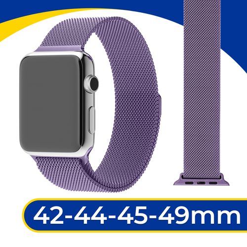 Металлический ремешок на Apple Watch 1-9, SE, Ultra 42-44-45-49 мм / Браслет миланская петля для часов Эпл Вотч 1-9, СЕ, Ультра / Лавандовый