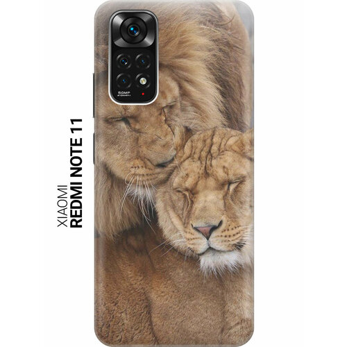 Силиконовый чехол на Xiaomi Redmi Note 11, Note 11S, Сяоми Редми Ноут 11, Ноут 11С с принтом "Милые львы"