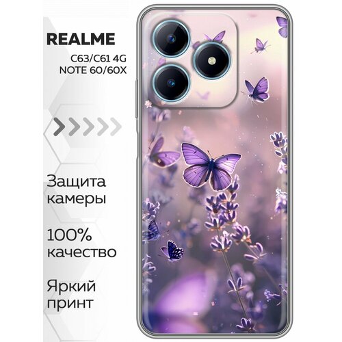 Чехол для Realme C63, Note 60, 60X бабочки и лаванда (Реалми С63, Нот 60, Ноут 60х)