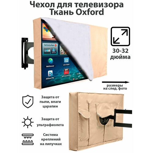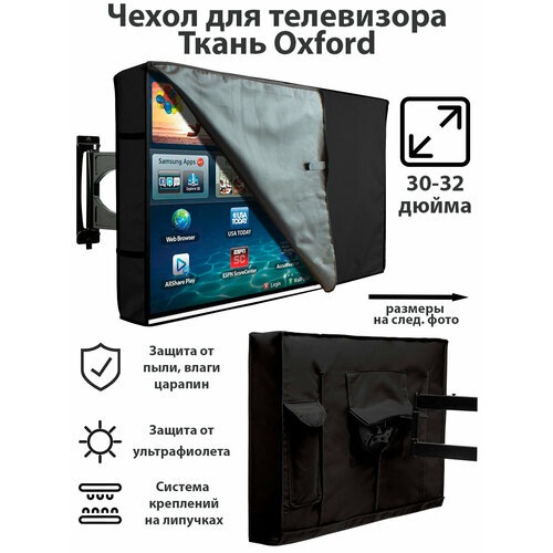 Home TV-3032ox210 - полезный и нужный аксессуар для дома, дачи, квартиры, в особенности для кухни, комнаты, лоджии, веранды, где установлен телевизор. Чехол-накидка для телевизора защищает от пыли, влаги, мелких повреждений, листьев, дождя и воздействия ультрафиолета на пластиковые детали, которое приводит к их пожелтению. Накладка на телевизор подходит для телевизоров с диагональю от 30 до 32 дюймов. Рекомендации по стирке и сушке органайзера на телевизор: только ручная стирка при 30 градусах, с небольшим кол-вом геля. Гладить изделие необходимо только после его полного высыхания и только с изнанки. Водонепроницаемый чехол на телевизор будет долго служить вам и сохранит его первоначальный вид. Защитный футляр для телевизора выполнен из прочной ткани Oxford, что позволят ему не затираться. Также чехол на телевизор это отличный и практичный подарок на любой праздник!
