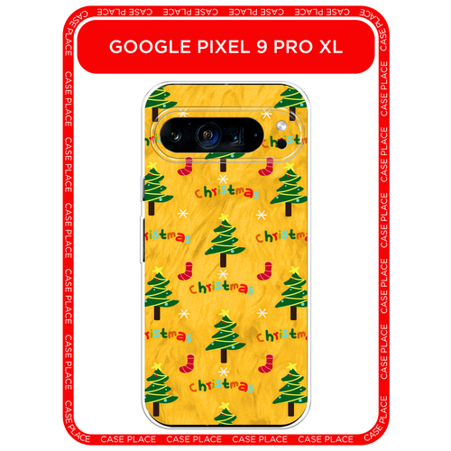 Чехол на Google Pixel 9 Pro XL / Гугл Пиксель 9 Про XL с принтом Ёлочки на жёлтом паттерн