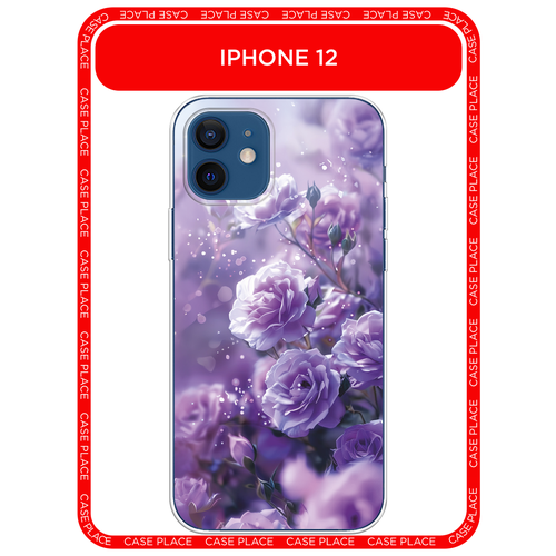 Чехол на Apple iPhone 12/12 Pro / Айфон 12/12 Про с принтом Романтичные фиолетовые цветы
