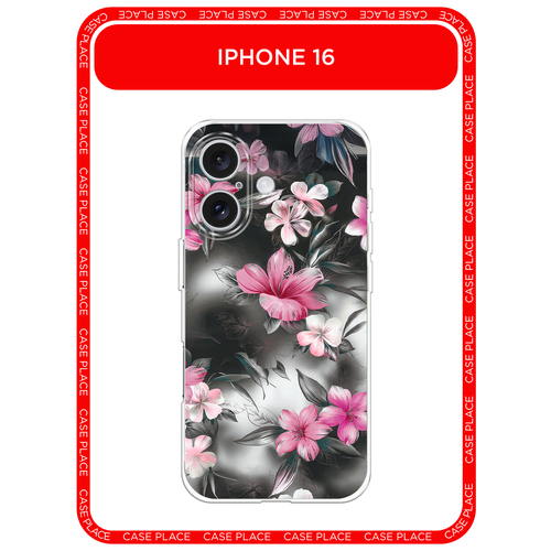 Чехол на Apple iPhone 16 / Айфон 16 с принтом Цветы на сером